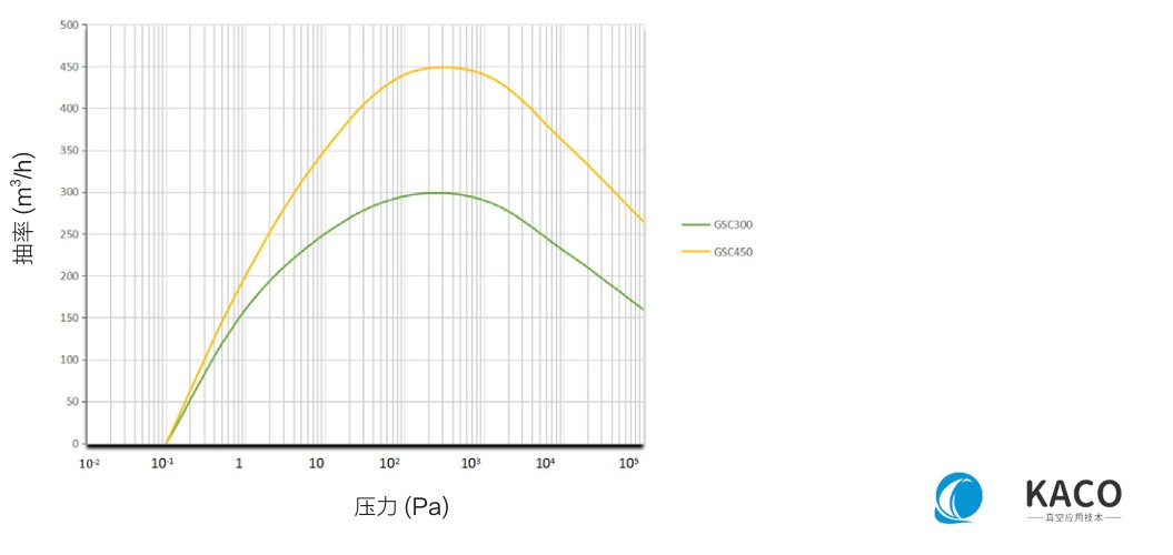 GSC300D螺杆干泵的抽速曲线图展示了该泵在不同压力下的抽速变化情况,为用户提供了直观的性能参考。